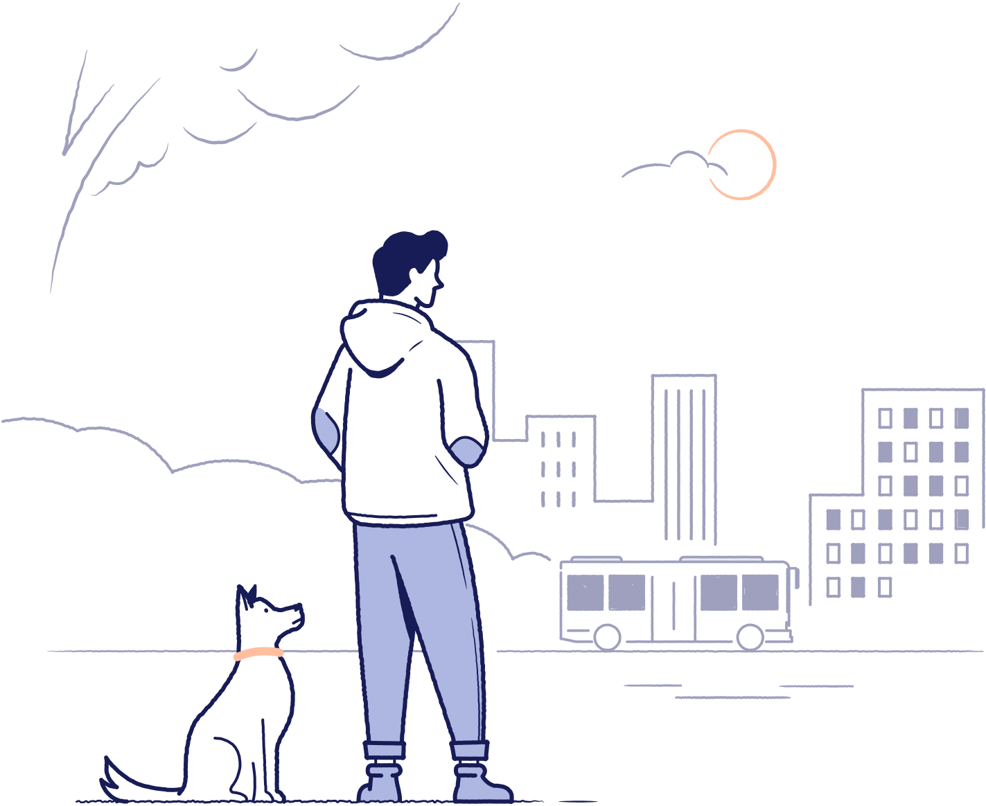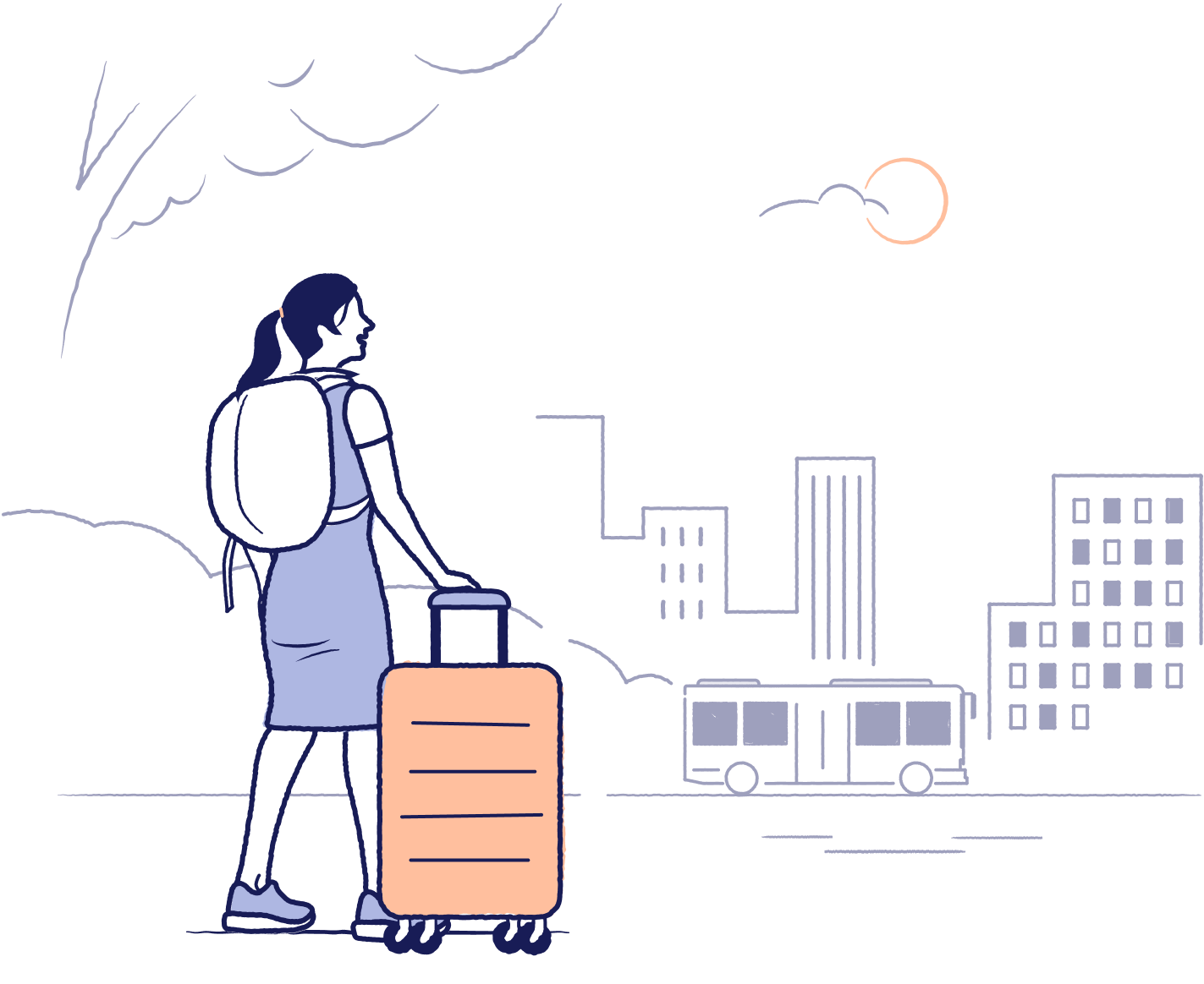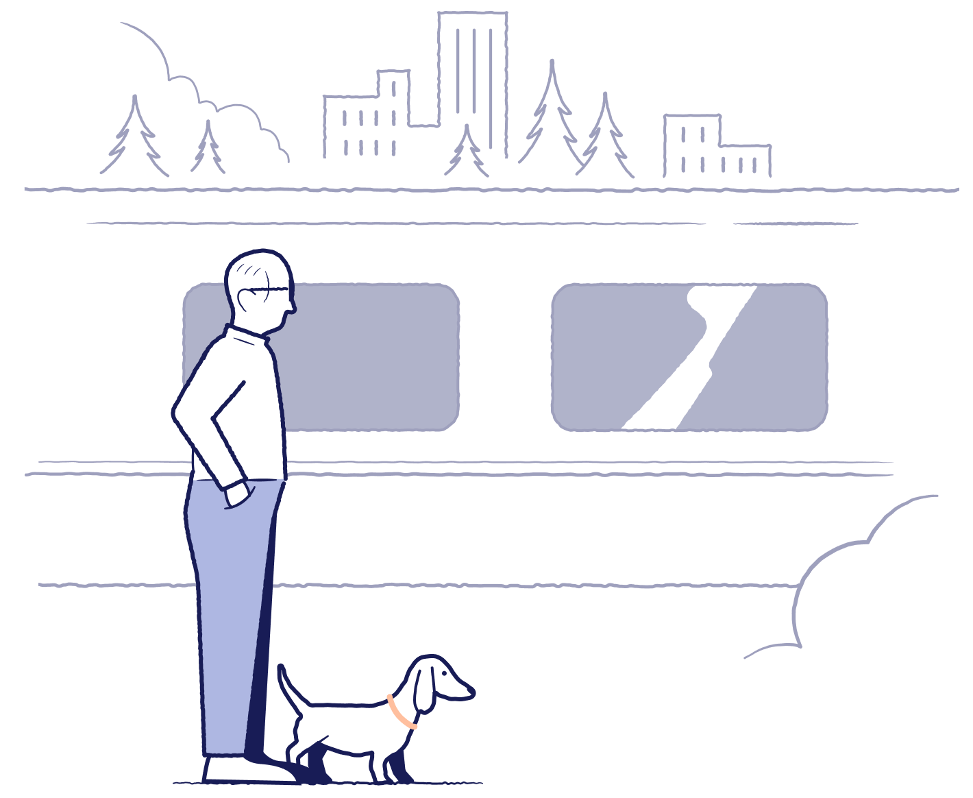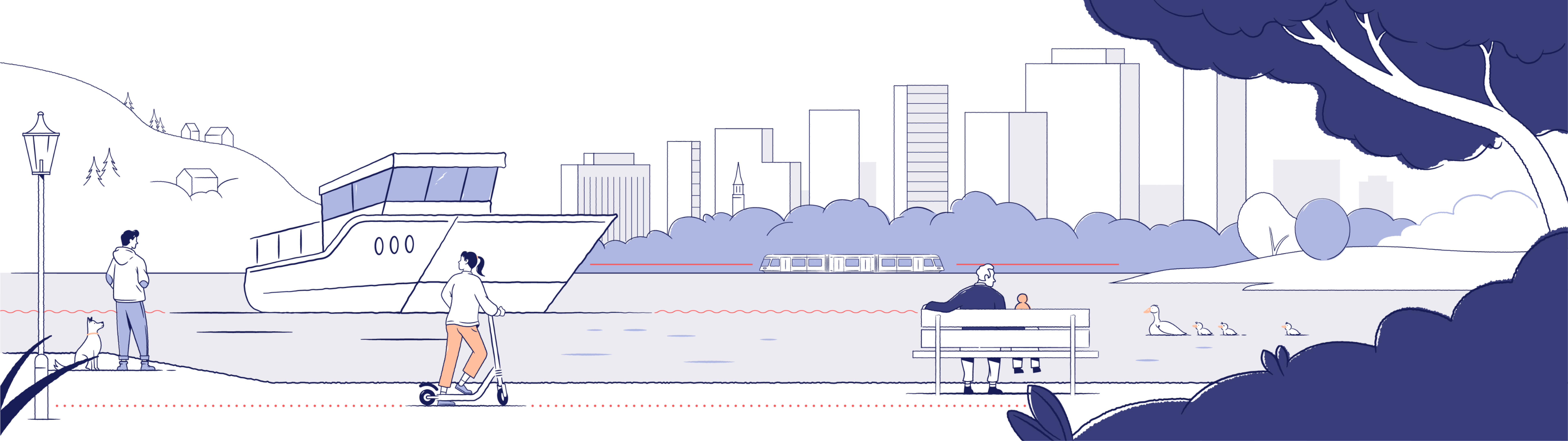 Hovedillustrasjonen skal anvendes slik at den oppleves som brukerens første møte med Entur, for å introdusere hvem vi er og hva vi gjør. Brukes f.eks på introsider eller som onboarding-illustrasjon.