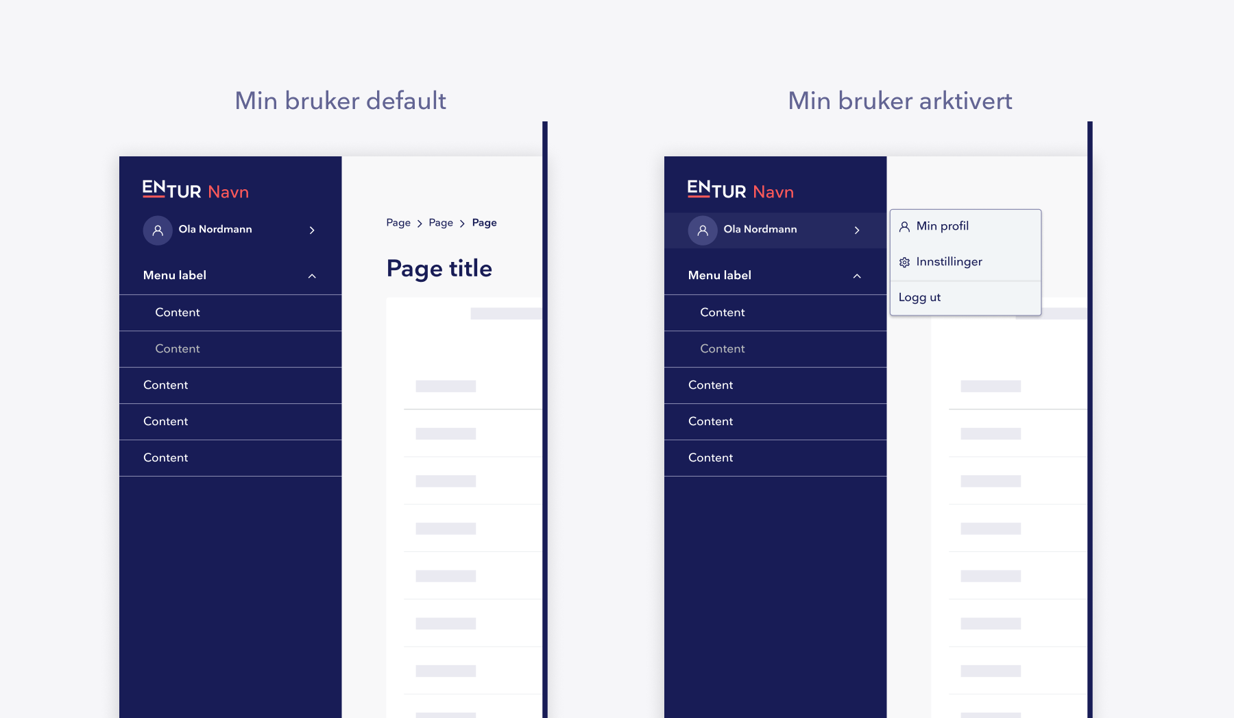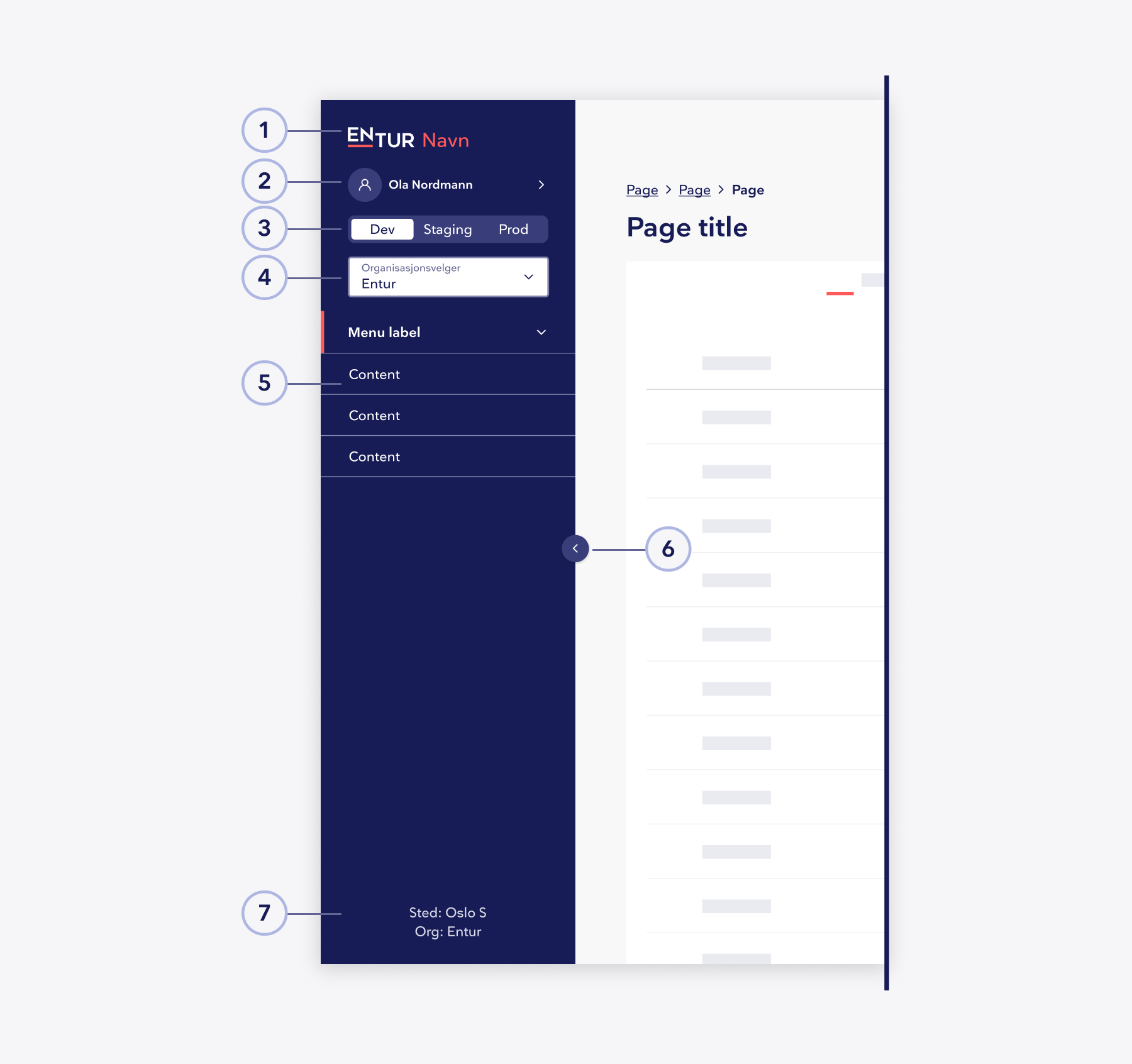 - Produktlogo: Produktlogoen viser «Entur» etterfulgt av produktnavnet og fungerer som inngang til produktets startside.