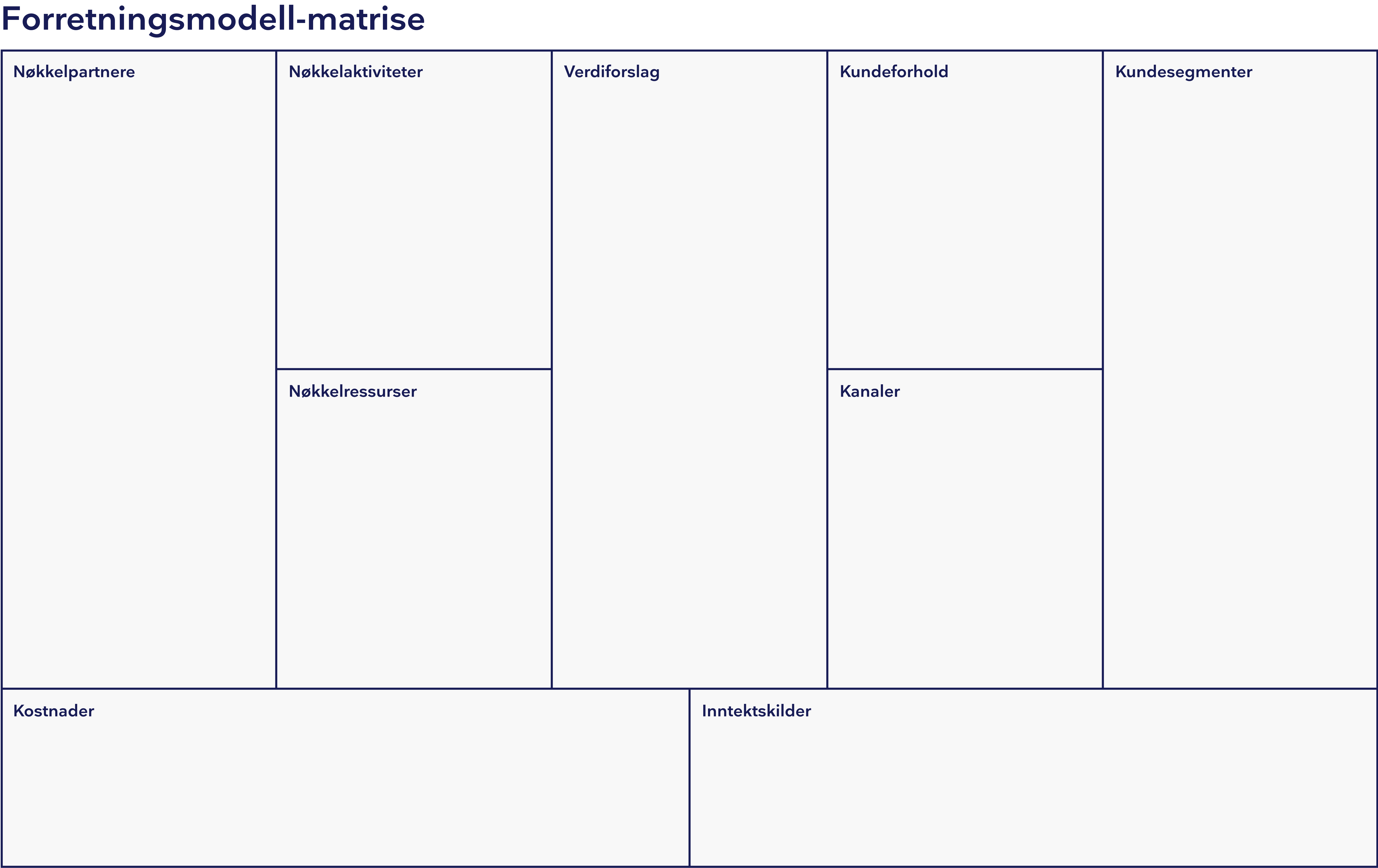 En metode for å sette opp en forretningsmodell for hva teamet/området/bedriften din skal gjøre i en matrise.